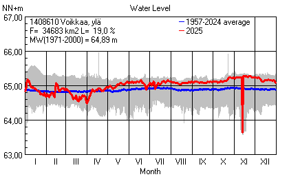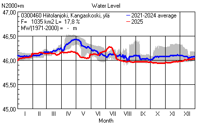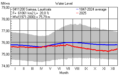 Water level in Southeast Finland 2025