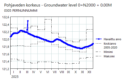 Pohjavedenkorkeudet Hämeen elinkeino-, liikenne- ja ympäristökeskuksen alueella 2025