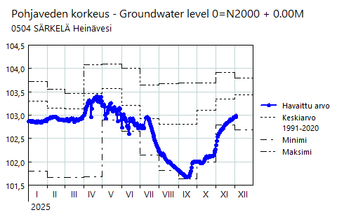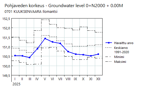 Pohjavedenkorkeudet Pohjois-Karjalan elinkeino-, liikenne- ja ympäristökeskuksen alueella 2025